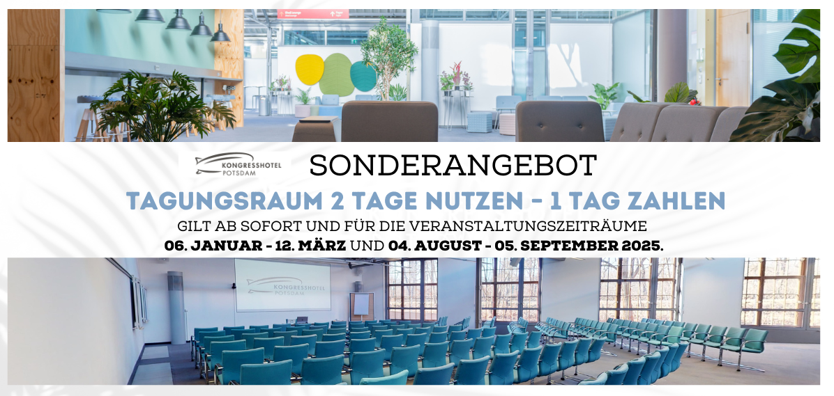 Hybrid oder vor Ort, in kleiner Runde oder im großen Rahmen – mit unseren flexiblen Tagungsformaten und der neusten Technik wird Ihre Tagung im Kongresshotel Potsdam ein voller Erfolg. Für Verbände, Veranstaltungen im Bereich der Pharmaindustrie oder Sportvereine sind wir ebenfalls die richtigen Ansprechpartner.
